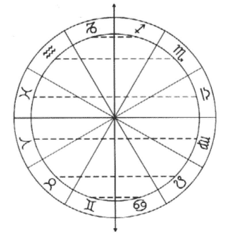 Mediante este último sistema, como nos explica Firmicus, el eje “espejo” de los antiscios quedaría como vemos en la imagen.