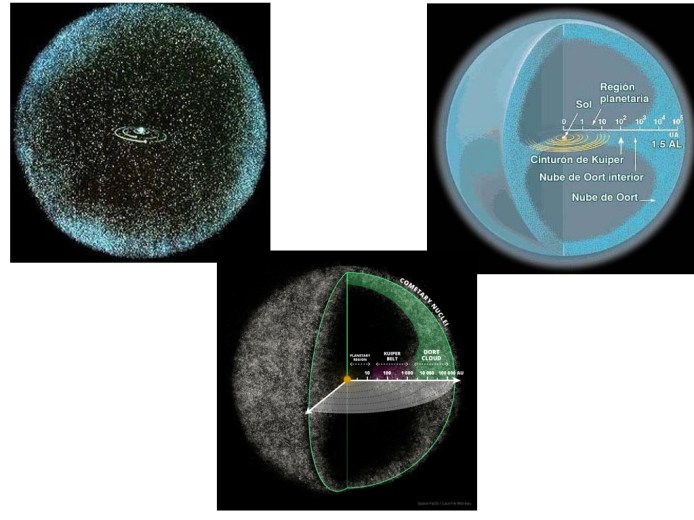 El Sistema Solar es un sistema donde el Sol lidera indudablemente. Se puede decir que la Tierra está dentro del Sol en cuanto a que está dentro de la estructura que genera a través de su gravedad, magnetismo y viento solar. Esto puede entenderse con las siguientes imágenes donde vemos los límites del Sistema Solar definidos por la llamada Nube de Oort y que se encuentra mucho más allá de Plutón.