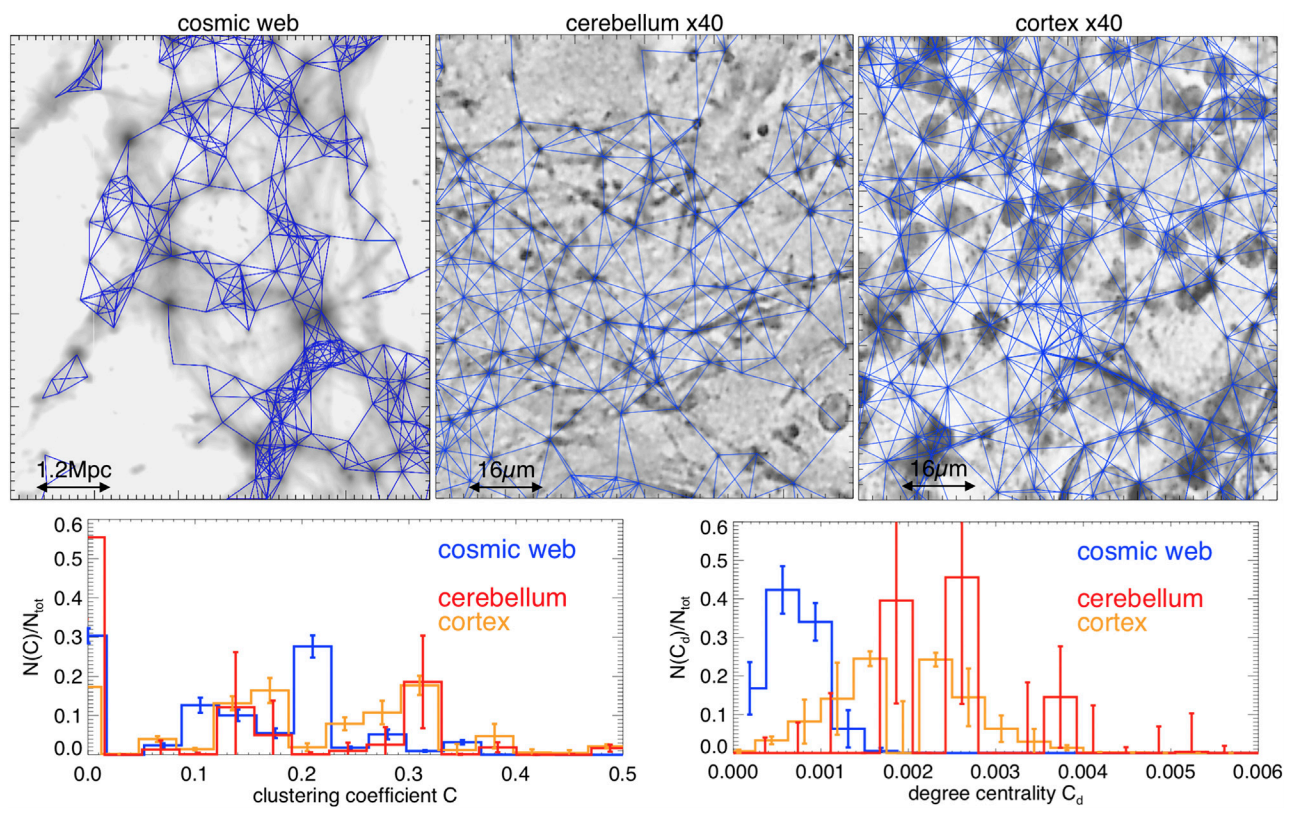 Lo más destacado de esta investigación, tal como explican ambos autores en su artículo, es que, midiendo el grado de conectividad y coeficiente de agrupamiento de, por un lado, la red cósmica, y, por otro lado, de la red neuronal, han conseguido una visión panorámica de los nodos y las redes en ambos sistemas.