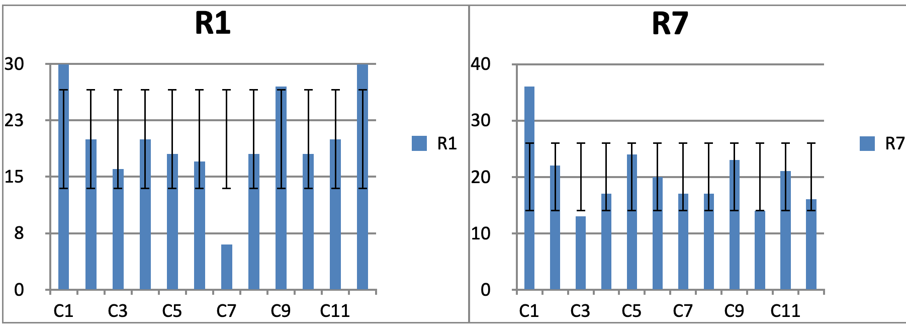 | C7 | 6 | 16 | 9 | 17 | 14 | 16 | 17 | 12 | 20 | 15 | 15 | 14 |