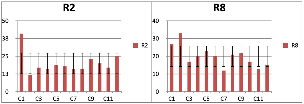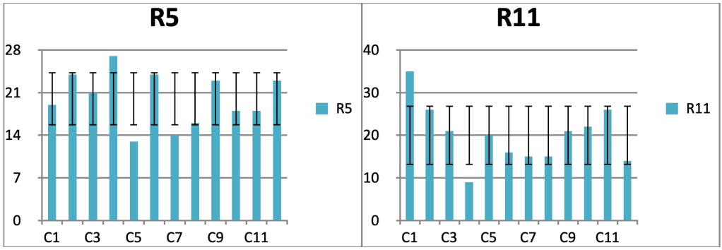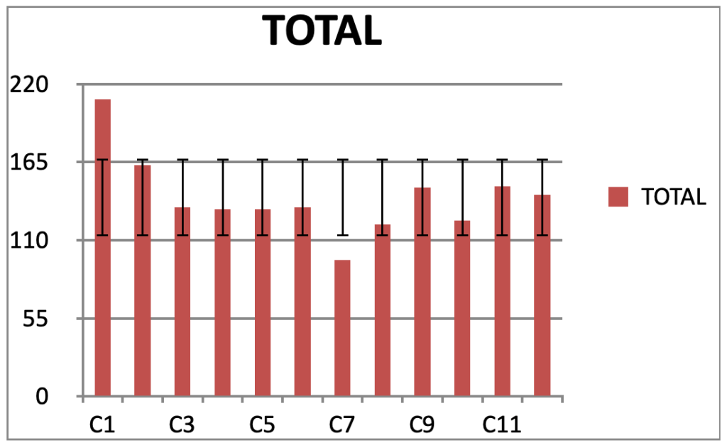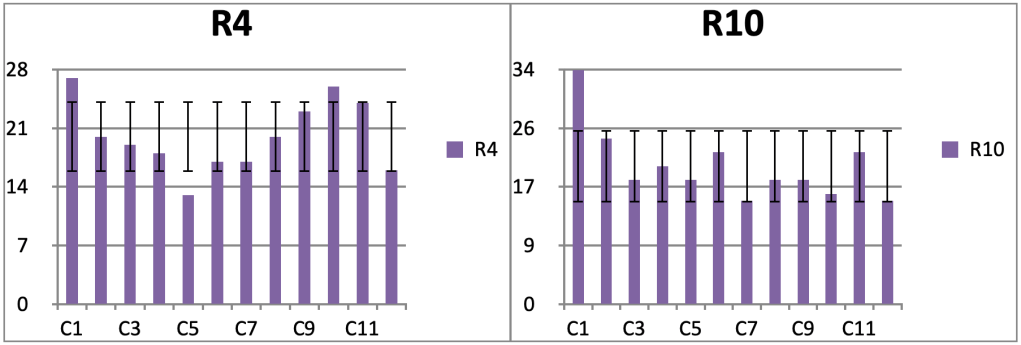 | C10 | 18 | 20 | 12 | 26 | 18 | 15 | 14 | 17 | 12 | 16 | 22 | 15 |