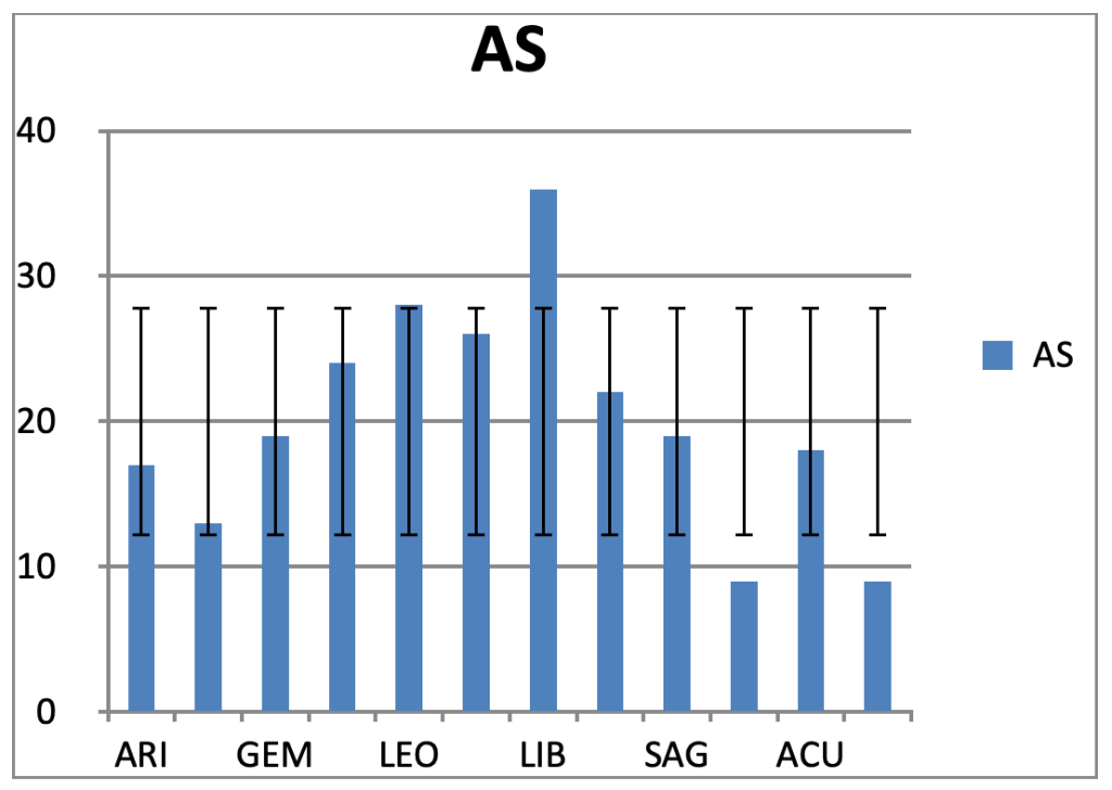 4.-Hemos eliminado los registros menos fiables, aquellos que aún siendo fiables situaban el AS en los primeros o últimos 3º del signo (error de 15 minutos aprox. en la hora de nacimiento, perfectamente posible en los registros más fiables).