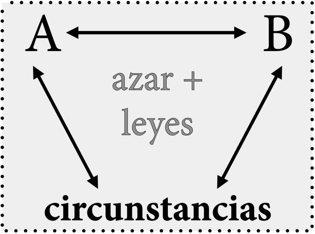 Así pues, siguiendo la lógica de los átomos, si A fuera Teresa, su diseño facilitaría determinadas conexiones, incluidos sucesos traumáticos, que sería aquí B, pero Teresa -A- no causaría B, pues el motivo real de la relación entre A y B sería la interacción de varios factores:
