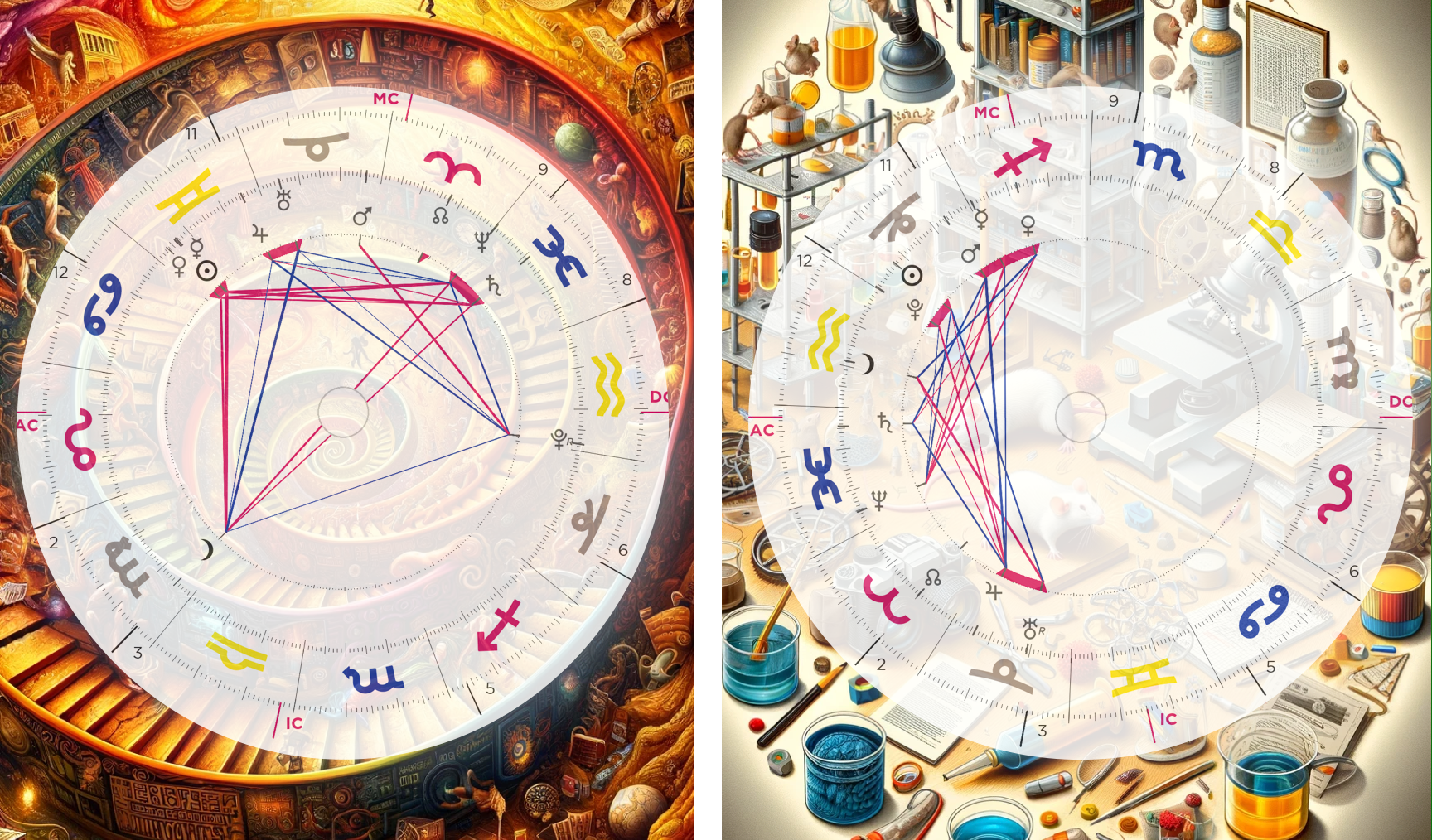 Por último, ya hemos dicho que dos cartas natales deberían ser interpretadas de forma lo más diferente posible, pero ¿y la misma carta natal pero perteneciente a dos personas diferentes?